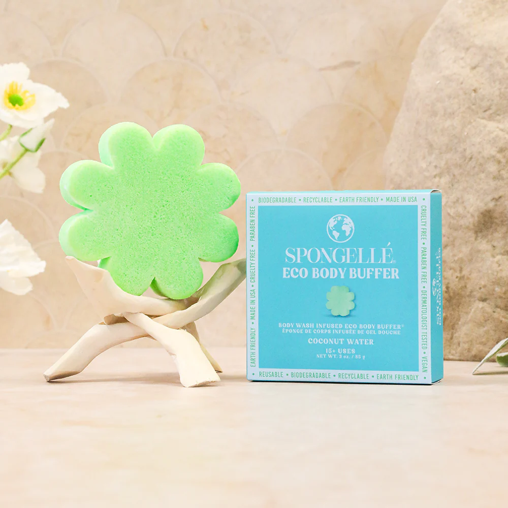 Spongellé’s® Eco Infused Body Buffer is an all-in-one Body Wash Infused Buffer® that cleanses, exfoliates, massages, and also nourishes the skin with every use. Infused equally with extracts of tangerine, aloe vera, eucalyptus and coconut. Delighting the senses while promoting silky-smooth skin these buffers are also enriched with skin-loving ingredients like cocoa, mango, and shea butters. Dermatologist-tested these Eco Infused Body Buffers also create a rich, luxurious lather for the ultimate shower experience. Sulfate free as well as paraben-free, this is the perfect way to indulge in spa-worthy self-care. Stock up on your favourite or try all four refreshing fragrances: Coconut Water, Eucalyptus Mint, Fresh Tangerine, and Pink Aloe. Each scent is designed to delight the senses while leaving skin silky-smooth.