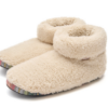 An allover soft faux sherpa with woven Cham Pa fabric detail with ultra-soft foam cushion on the inside